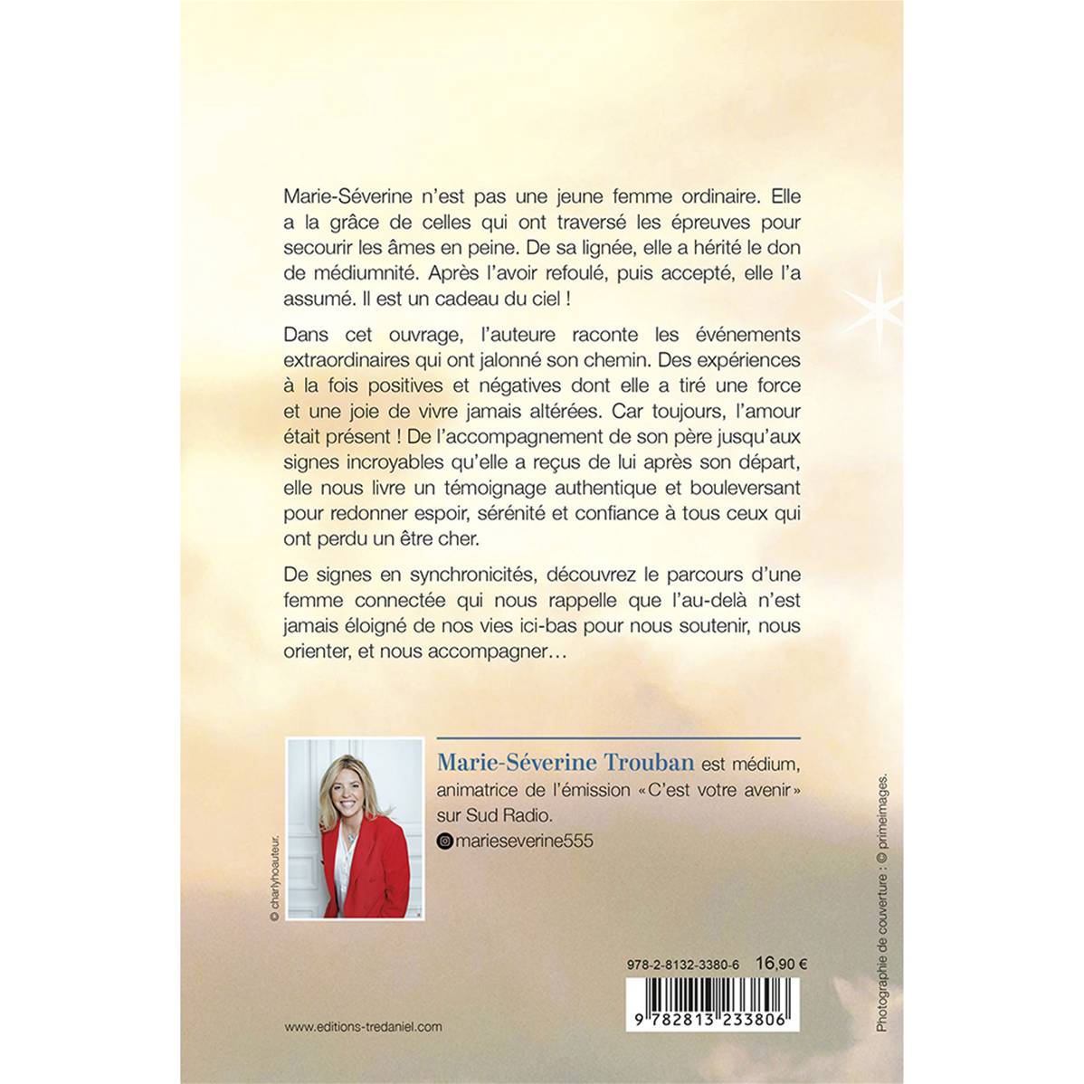 Marie-Séverine n’est pas une jeune femme ordinaire. Elle a la grâce de celles qui ont traversé les épreuves pour secourir les âmes en peine. De sa lignée, elle a hérité le don de médiumnité. Après l’avoir refoulé, puis accepté, elle l’a assumé. Il est un cadeau du ciel !